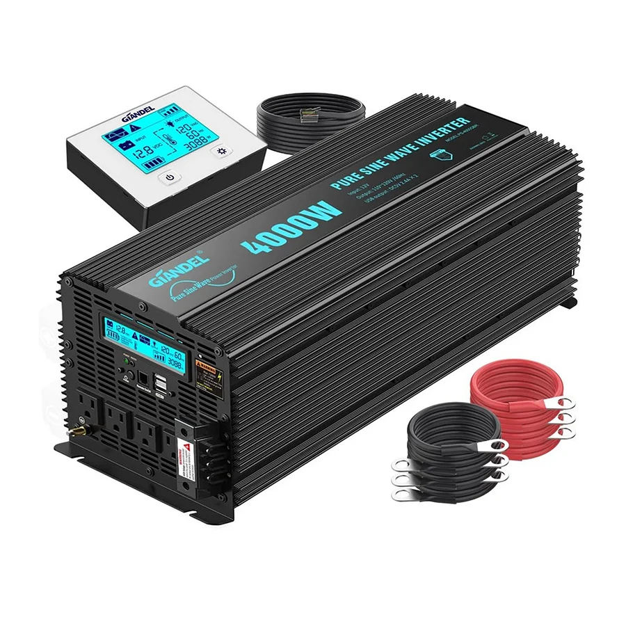 【PURE SINE WAVE INVERTER】This Power inverter provides 4000 watt true pure sine wave DC 12volt to AC 120volt continuous power, coming with 4 AC outlets and 2x2.4A USB port.More powerful than 4000Watt power inverter.Ideal for appliances under 4000Watt. Product liability is covered by AIG.