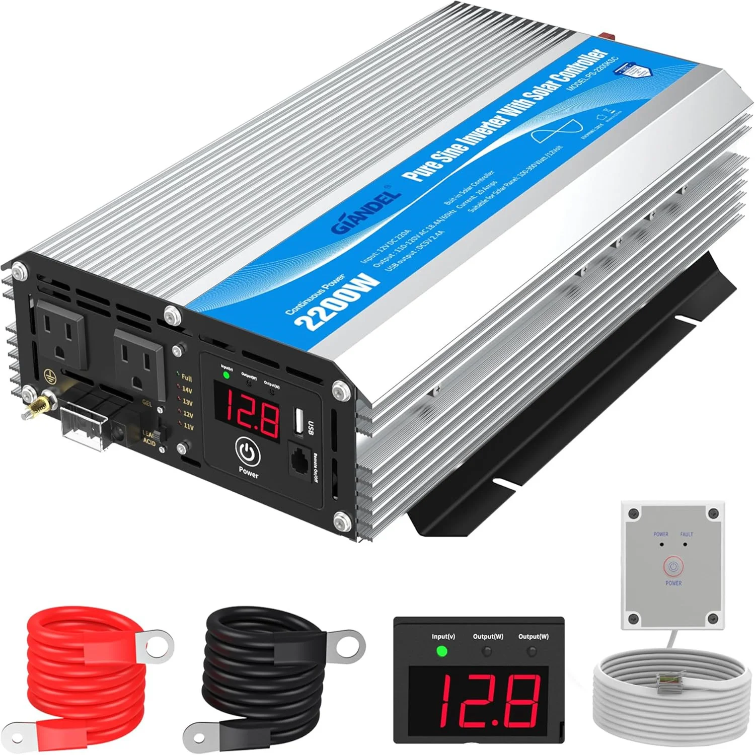 ▶ GIANDEL PURE SINE WAVE INVERTER◀:100% full continuous 2200W pure sine wave power and 4400W peak power,more powerul than 2000W inverter,with LED display,DC 12V,120V AC Dual Outlets and 1x2.4A USB port